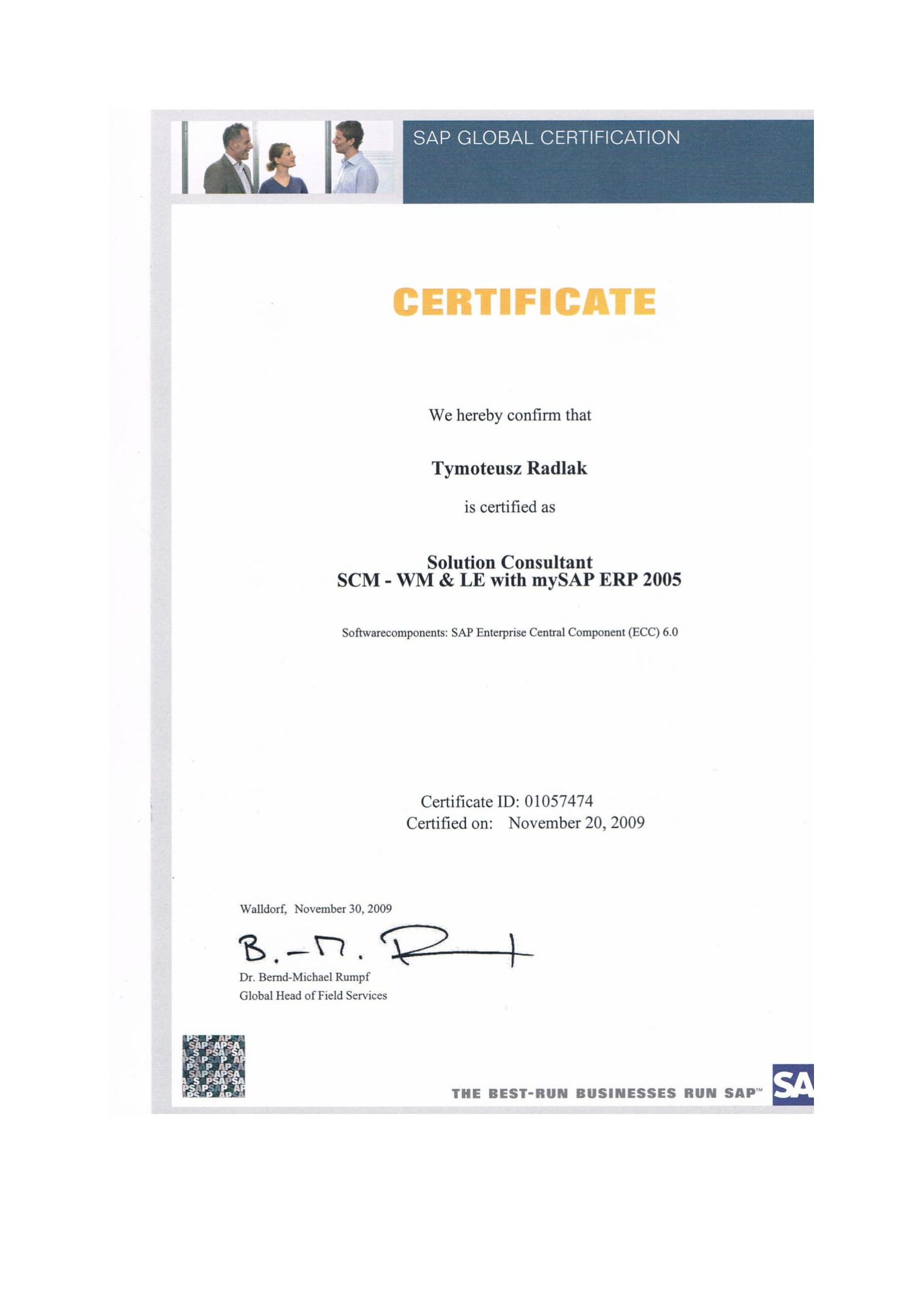 Certified Solution Consultant SCM – WM & LE with SAP ERP 2005