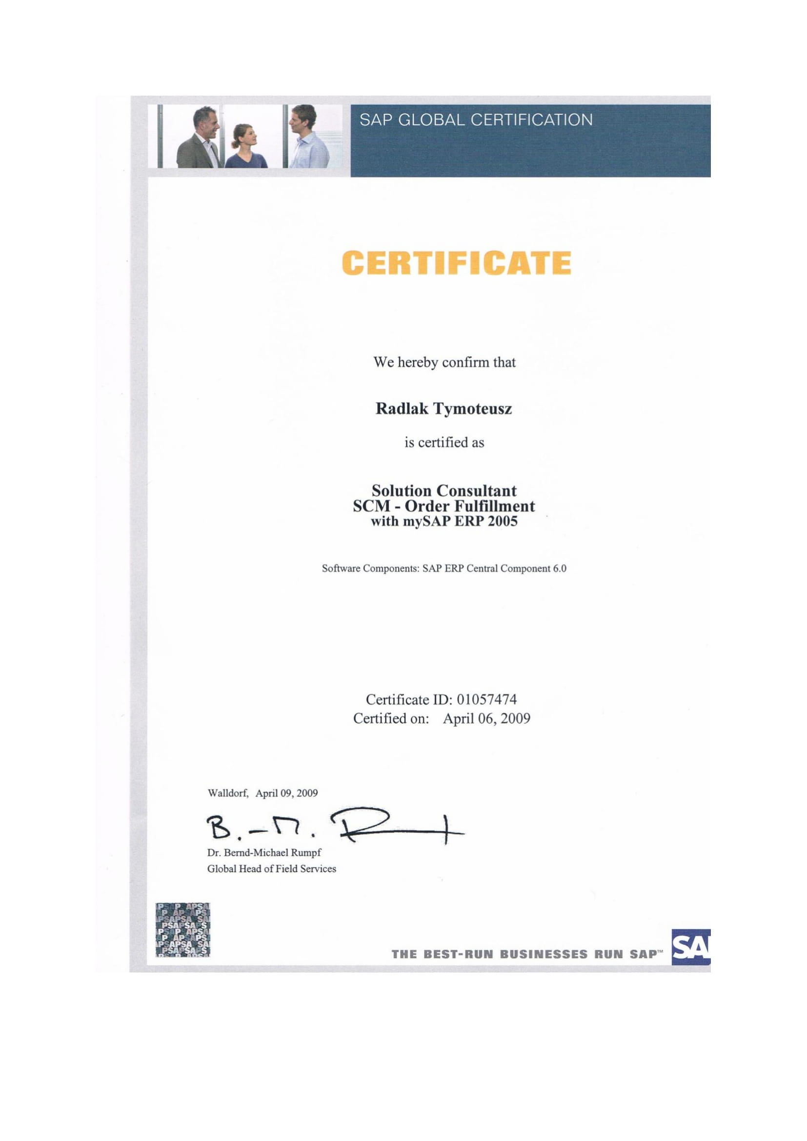 Certified - Solution Consultant SCM - Procurement with my SAP ERP