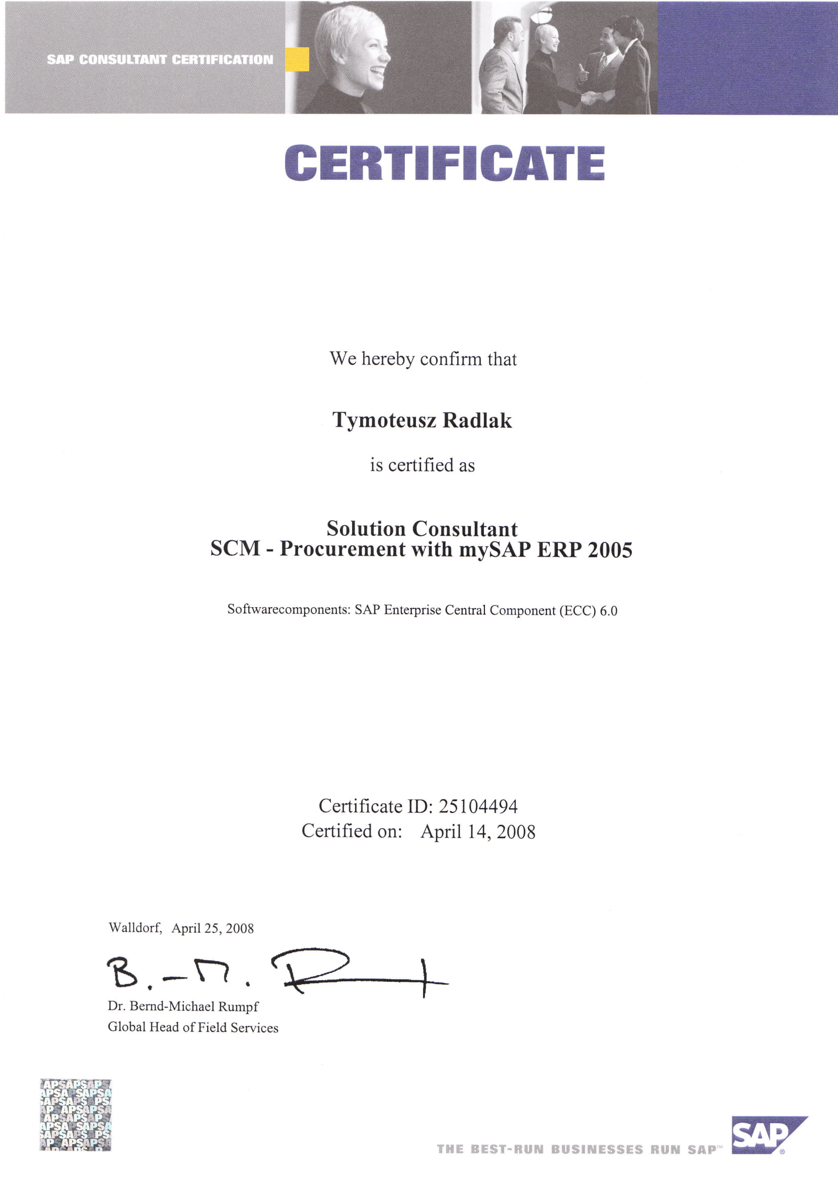Certified - Solution Consultant SCM - Procurement with my SAP ERP
