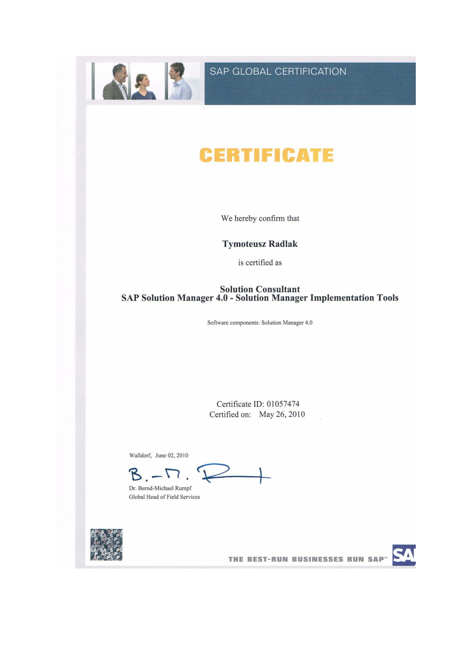 Certified Solution Consultant - SAP Solution Manager 4.0